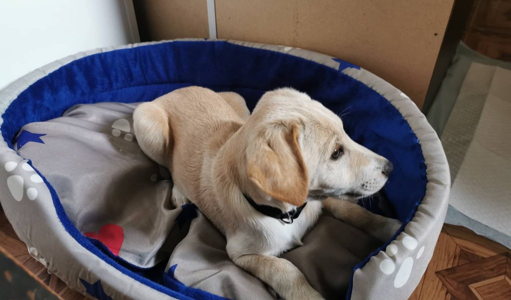 Hano bol v prvých momentoch veľmi ustráchaný psík, ale v dočasnej opatere u Janka robí veľké pokroky.