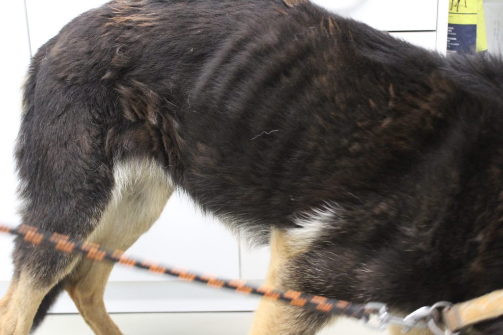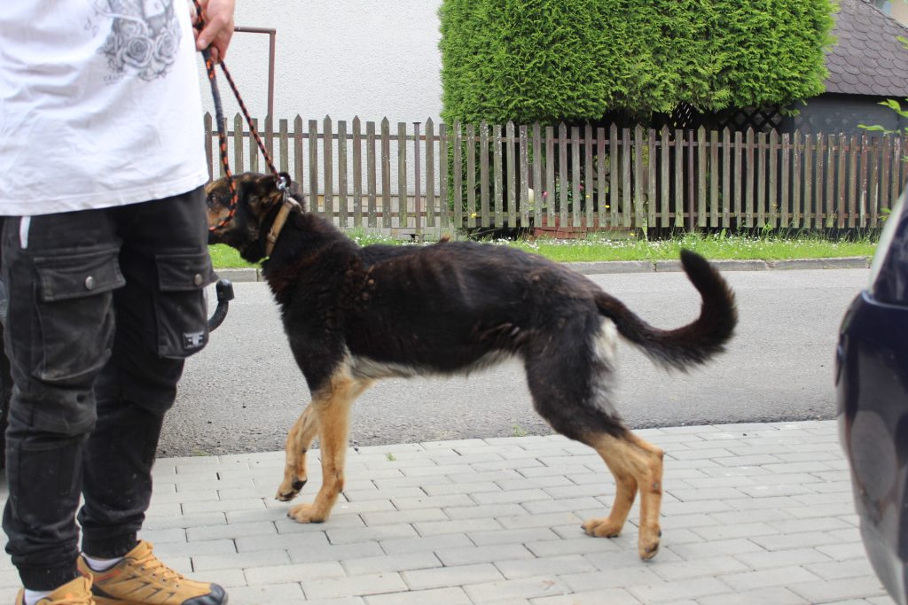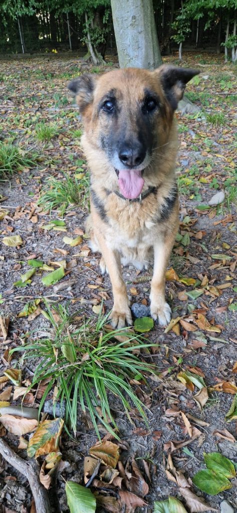 Tesse domov nehľadáme. Po zrejme ťažkom predchádzajúcom živote, si u nás zvykla, je veľmi spokojná a skutočne šťastná, tak nech takto prežije jeseň svojho života- s istotou a láskou. Tessa už ma zakalené oči, nohy už nepočúvajú- chodí len na kratšie prechádzky, na ďasnách rastie tumor. Bez liekov by to už nešlo. Tessu sme jedného dňa – spolu s Larou, našli uviazanú na našom pozemku na Dlhej Lúke. Obidve boli na kosť vychudnuté, s atrofovanými svalmi, Tessa s omrznutými ušami.