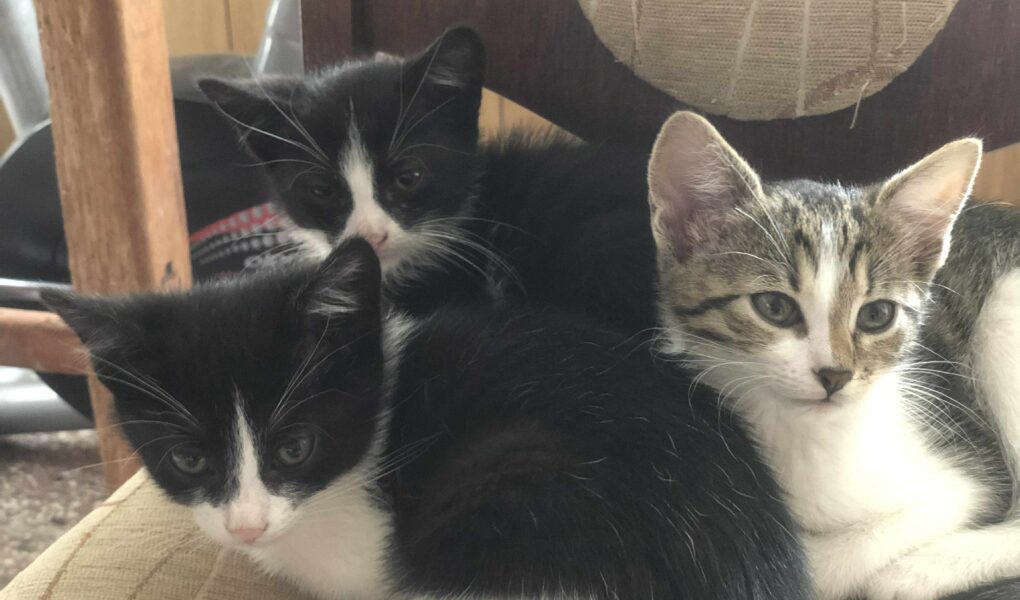 Máme tu dve mačičky – bielo-tigrovanú a čierno-bielu krásku – a k nim dvoch kocúrikov.