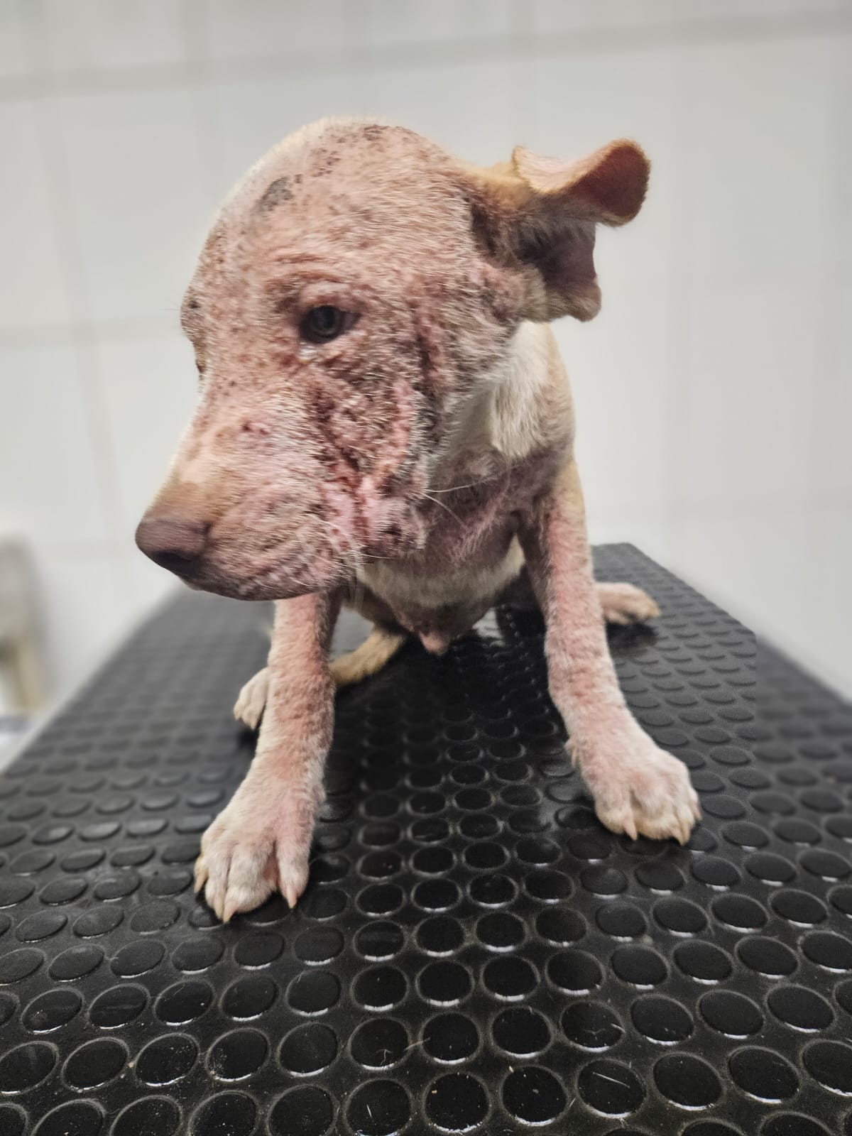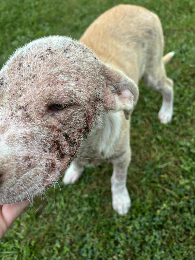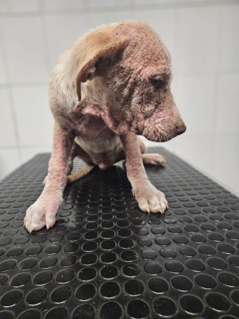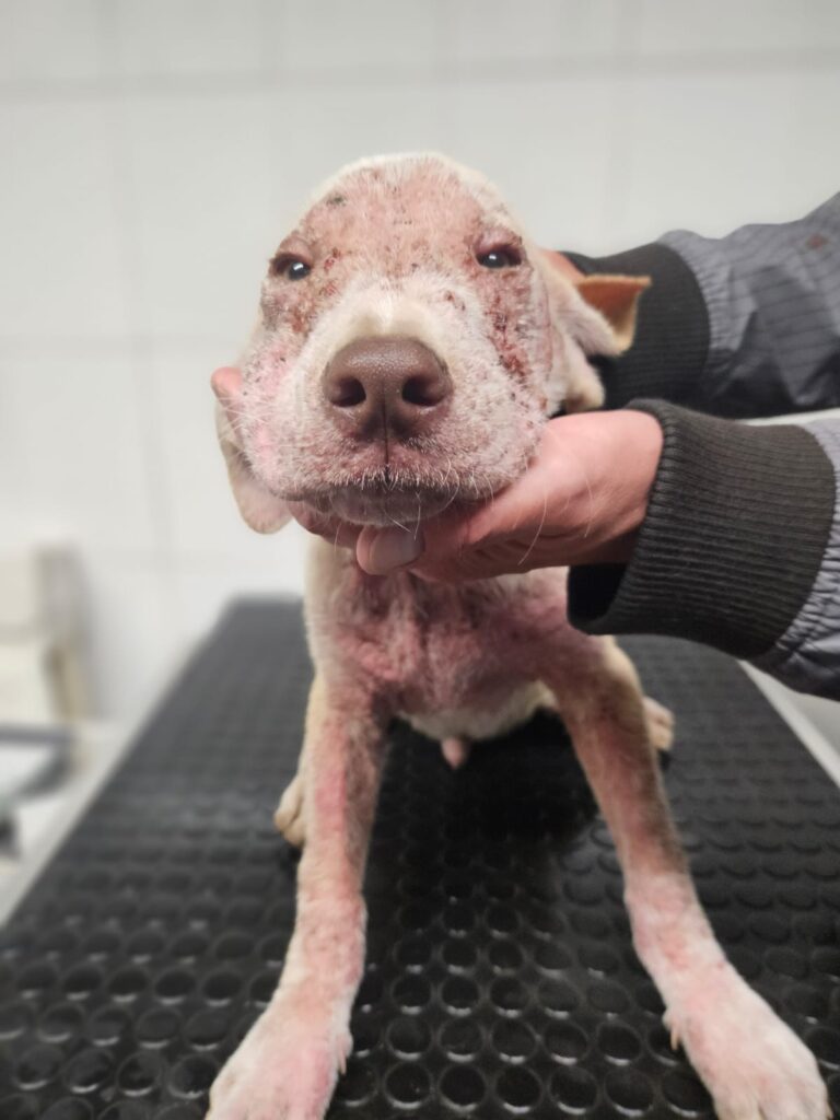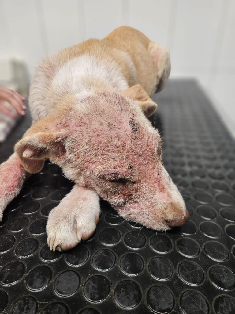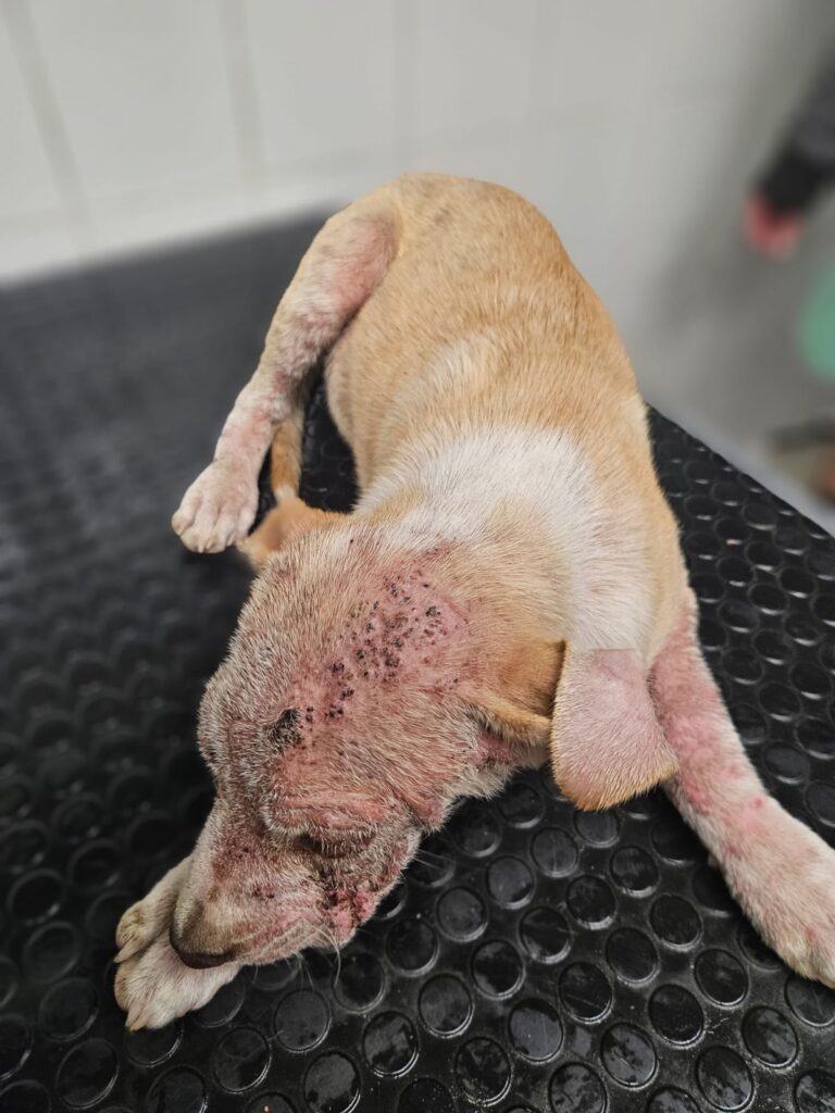 11. 09. 2025 reported dog in Gerlachov. Kokso, aged circa 4 – 4,5 months, Generalized Demodex (inflamed and thickened skin, inflamed eyes).