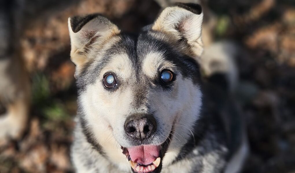 Kajo has hygienic habits, he learned very quickly where his „spot“ is, and he is okay with how things go in the shelter. He loves walks – at first he pulled a lot (like your typical husky) despite his handicap in his eyes. He loves running around, following his rest. He is a huge fan of his bowl being full and treats. 🙂