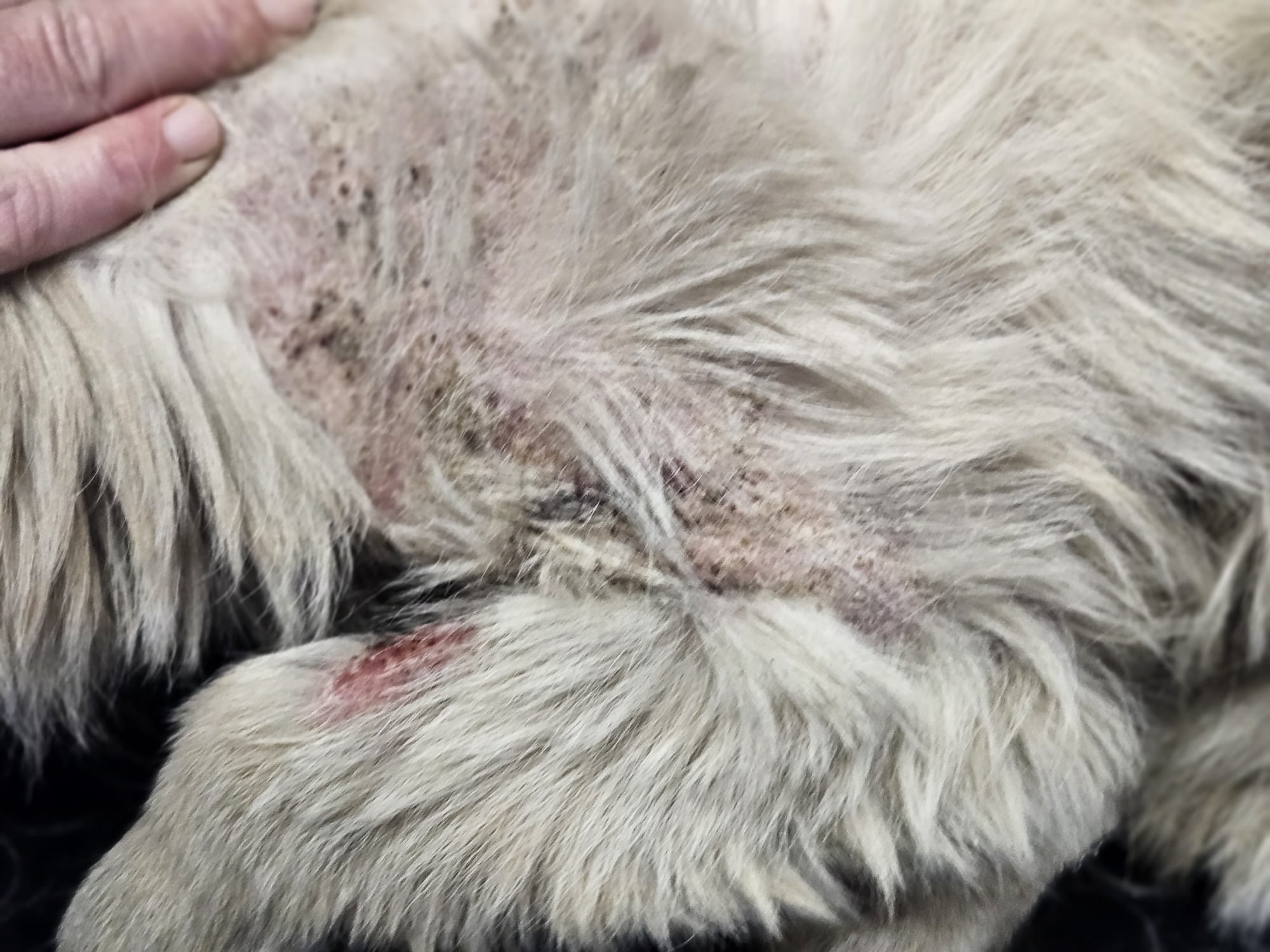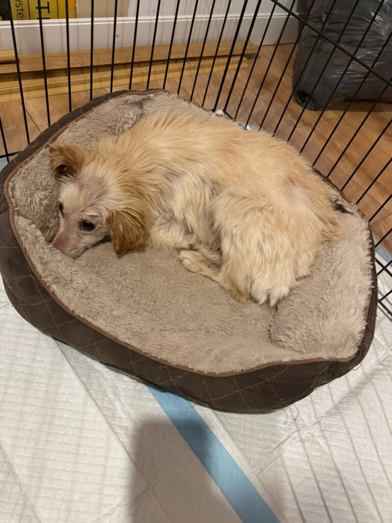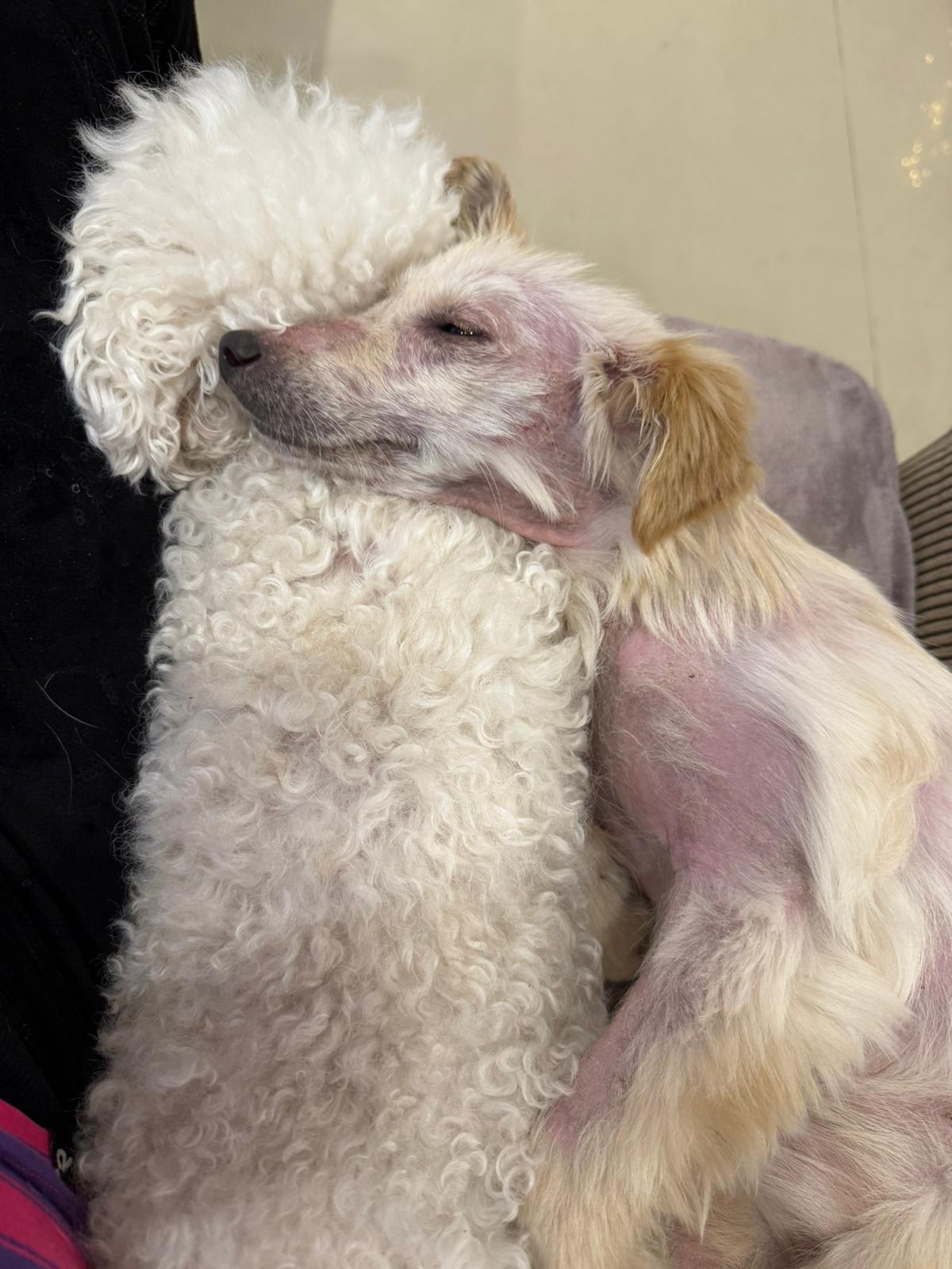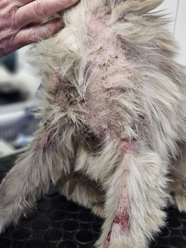 Cinka má demodex ( potvrdený mikroskopicky ), zápal kože, prišla dehydratovaná a veľmi hladná. Je ošetrená, začipovaná a začalo sa s liečbou.