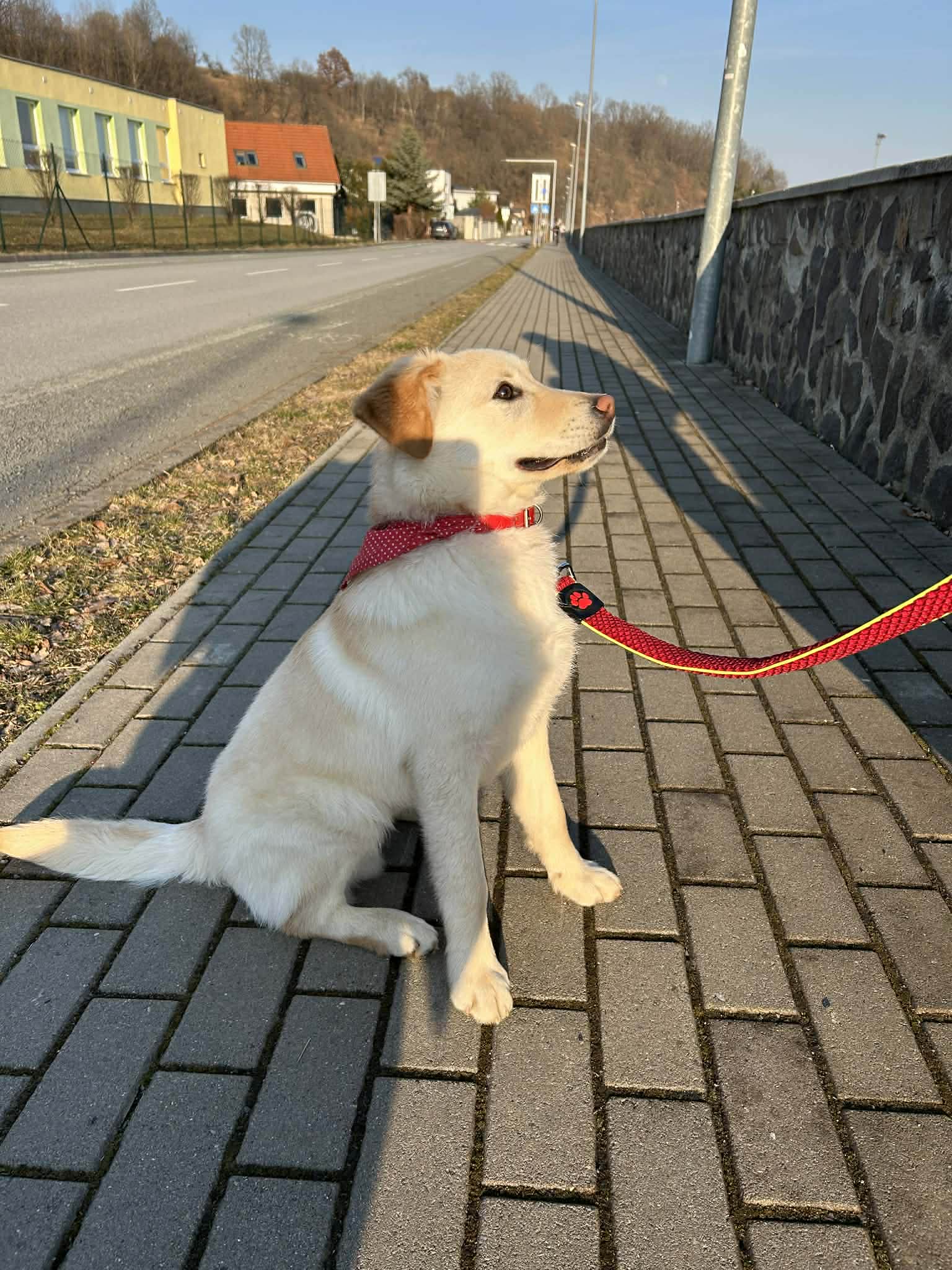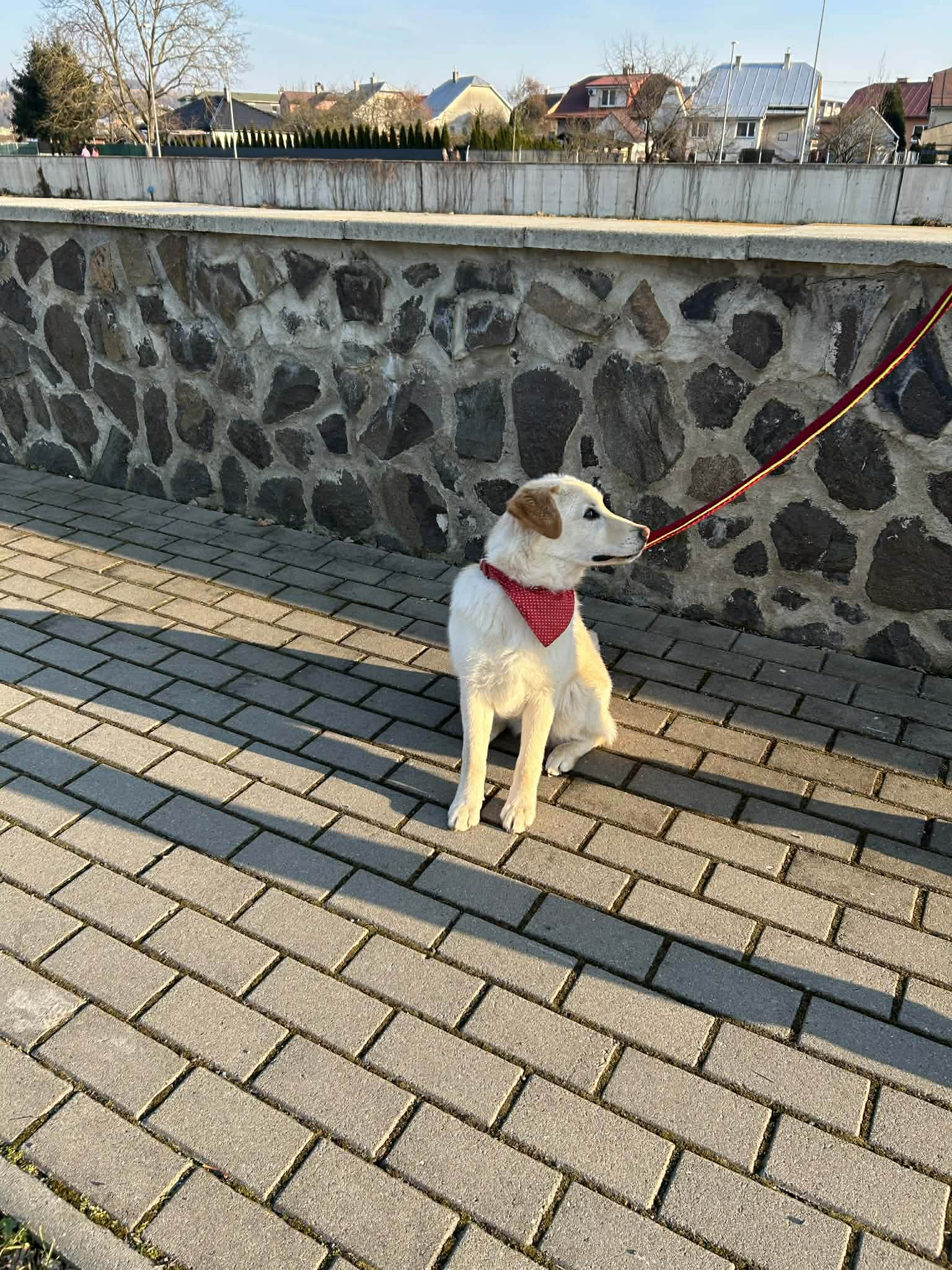 Benny je veselé ešte hravé štena. Rád sa učí . K psíkom a sučkám je sprvu opatrný, po chvíli nemá problém. Mačky rovnako.