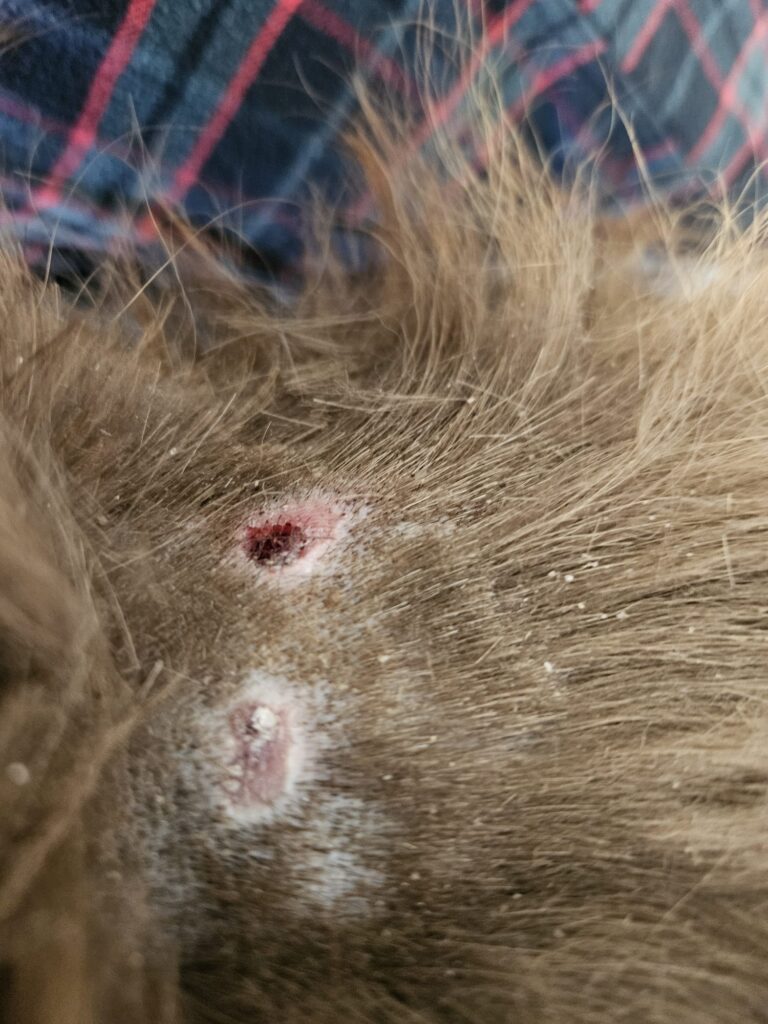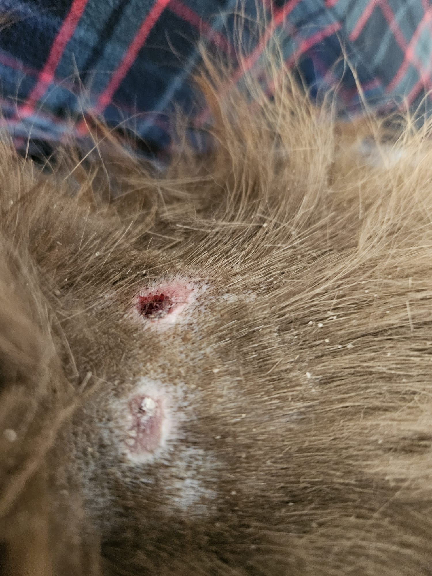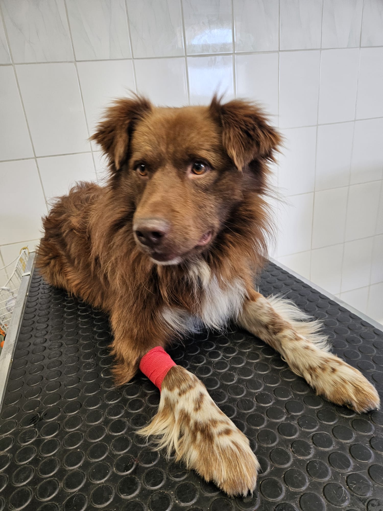 Má na sebe staršie zranenia po uhryznutí psom na bedrovej chrbtici a na pravej prednej labke. Pravdepodobne dlhšie hladoval a bol veľmi zablšený. Na ľudí je neagresívny.